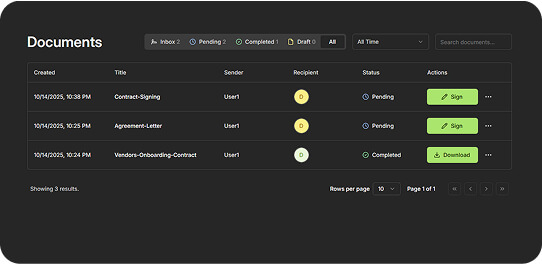 Our intuitive interface lets you create an account, upload a document, and send it for signing instantly. No training, no downloads, no hassle.