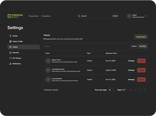 Bring everyone on board and scale seamlessly across teams. Collaborate on signing workflows while keeping private documents secure. Empower your team with Convoia Docs.
