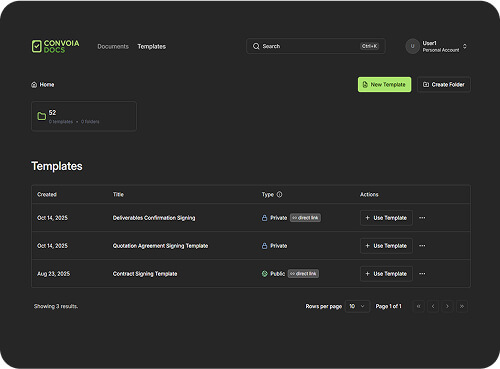 Break free from predatory pricing and hidden renewal costs. Convoia Docs is free to use, with no overcharges for extra sends or templates.