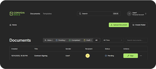Convoia Docs is the free and simple way to send and sign documents online. Streamline your agreements with unlimited, legally-binding e-signatures. Completely free.