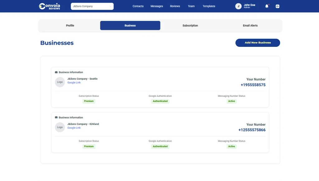 Whether you manage one location or dozens, Convoia keeps your data structured and secure. Switch between business profiles, manage unique Google review links, and maintain dedicated numbers for every brand.