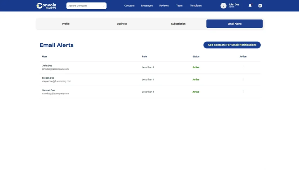 Stay informed with customizable notification rules. Receive instant email alerts based on customer ratings so your team can respond quickly when it matters most.